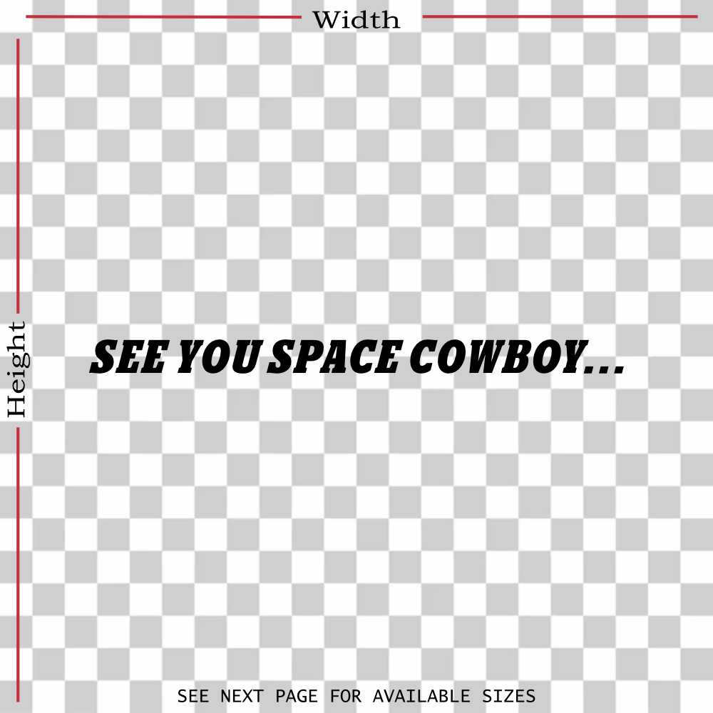 Cowboy Bebop See You Space Vinyl Decal Sticker works great on all surfaces such as trucks, cars, laptops, walls, windows, tumblers, phones and any other surface you can think of. These decals are made from ORACAL 651 Series brand premium cut vinyl which is marine-grade and rated for 8+ years of outdoor use in harsh saltwater environments. Our custom made decals are available in a variety of sizes, colors and fonts and are made right here in America. Your order will arrive ready to install within 5 to 7 days via USPS from our shop in Miami, Florida.